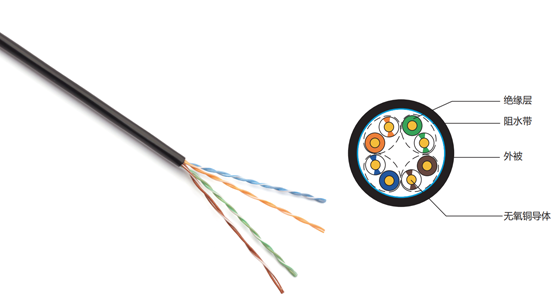 符合国际最新的ISO/IEC 11801、、ANSI/TIA-568-C.2对超五类线的的要求,,,,带宽达到100MHz,,并充分预留性能余量;安装施工更灵活;支持高速以太网及未来宽频应用;内加防水结构,,,有效地避免水分进入线缆内部;PE护套增加了线缆的抗张力和使用寿命。。。